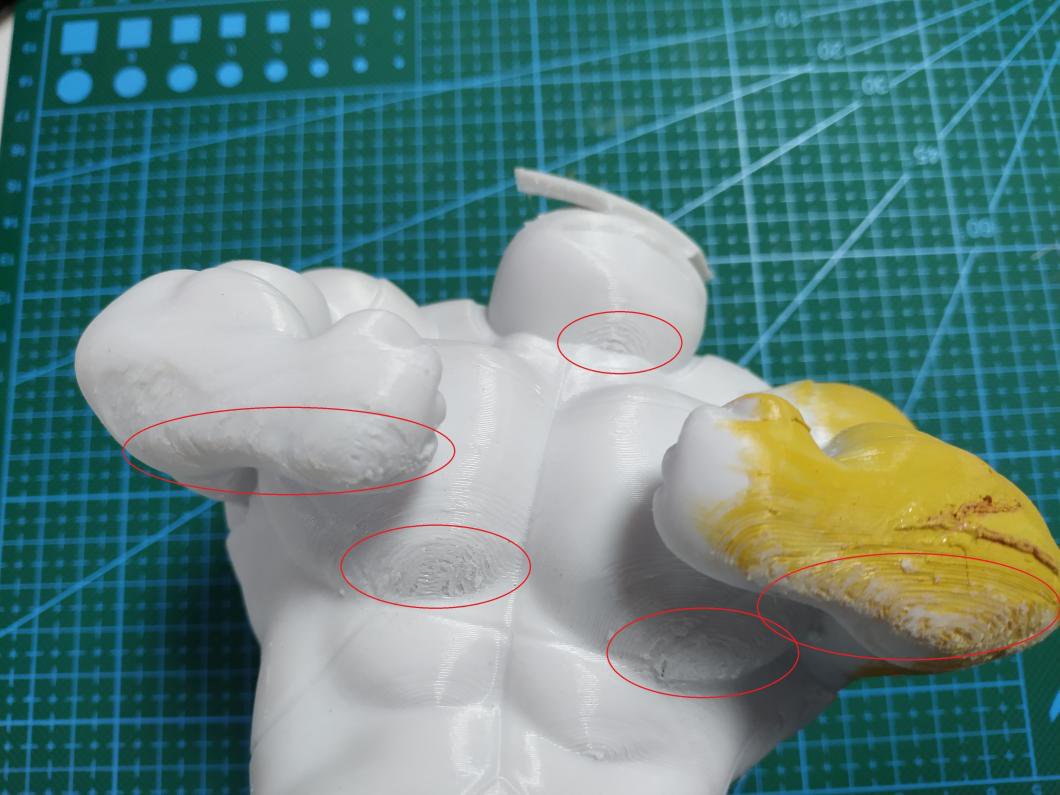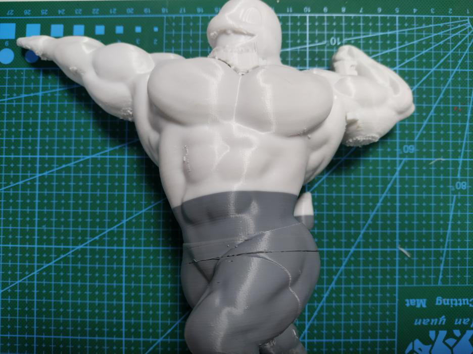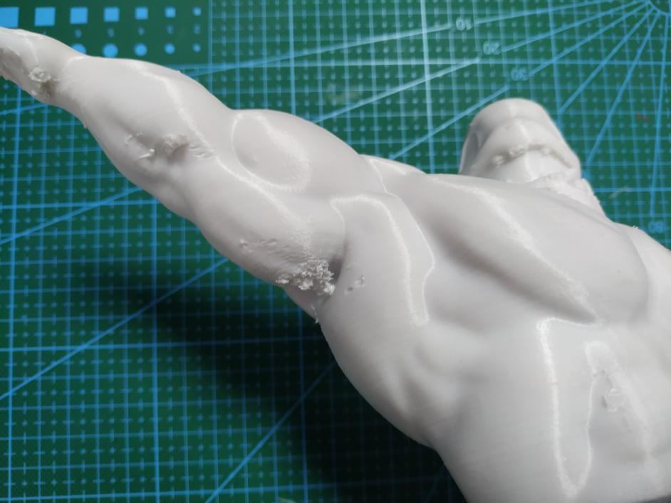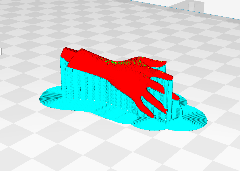 (如圖,豎直打印不僅能減少支撐面,而且還能提高整個手臂的精度效果,但是實際打印中,由于很纖細極容易失敗,只能犧牲表面效果來保證成功率。)