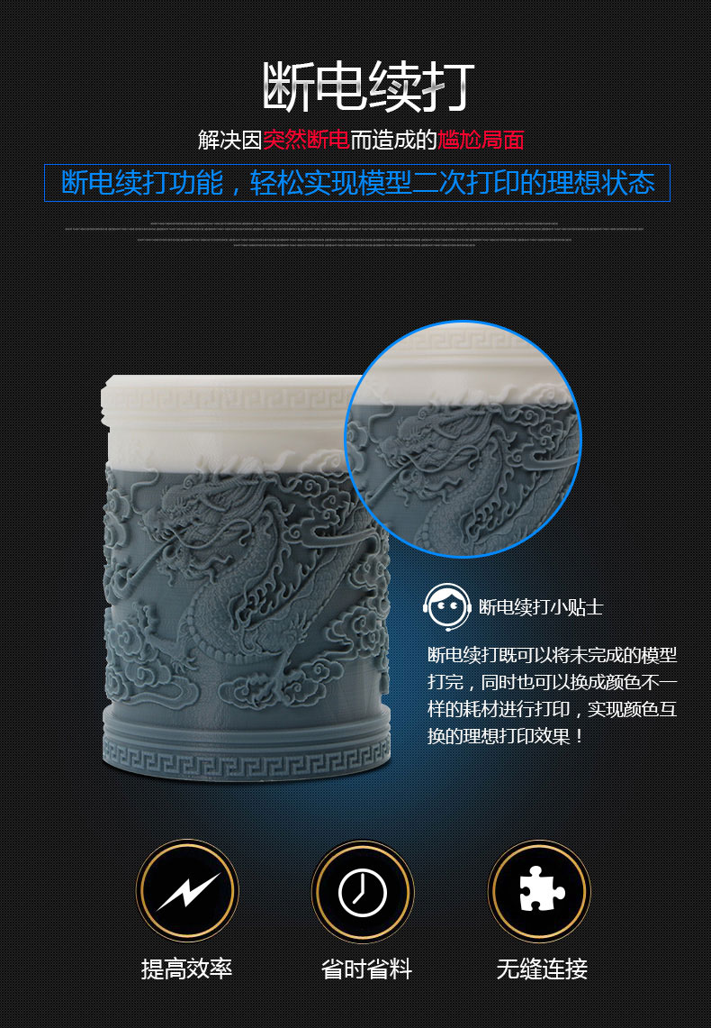 全球首創雙電機傳動送料結構,并配備高品質德國進口配件,打印精度媲美藝術品,這是一款追求“精確、精密、精致”的3D打印機。