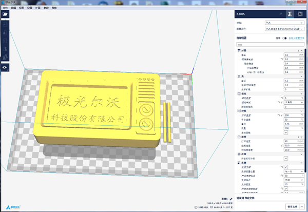 2、切片:在打印前,將電視機模型的主機與天線單獨保存成stl文件; 然后將stl文件導入切片軟件,設置層高、厚度、填充密度、打印速度、支撐等打印參數(shù)并保存成GCode文件,而后導入3D打印機即可開始打印。(切片軟件推薦:Cura /JGcreat)